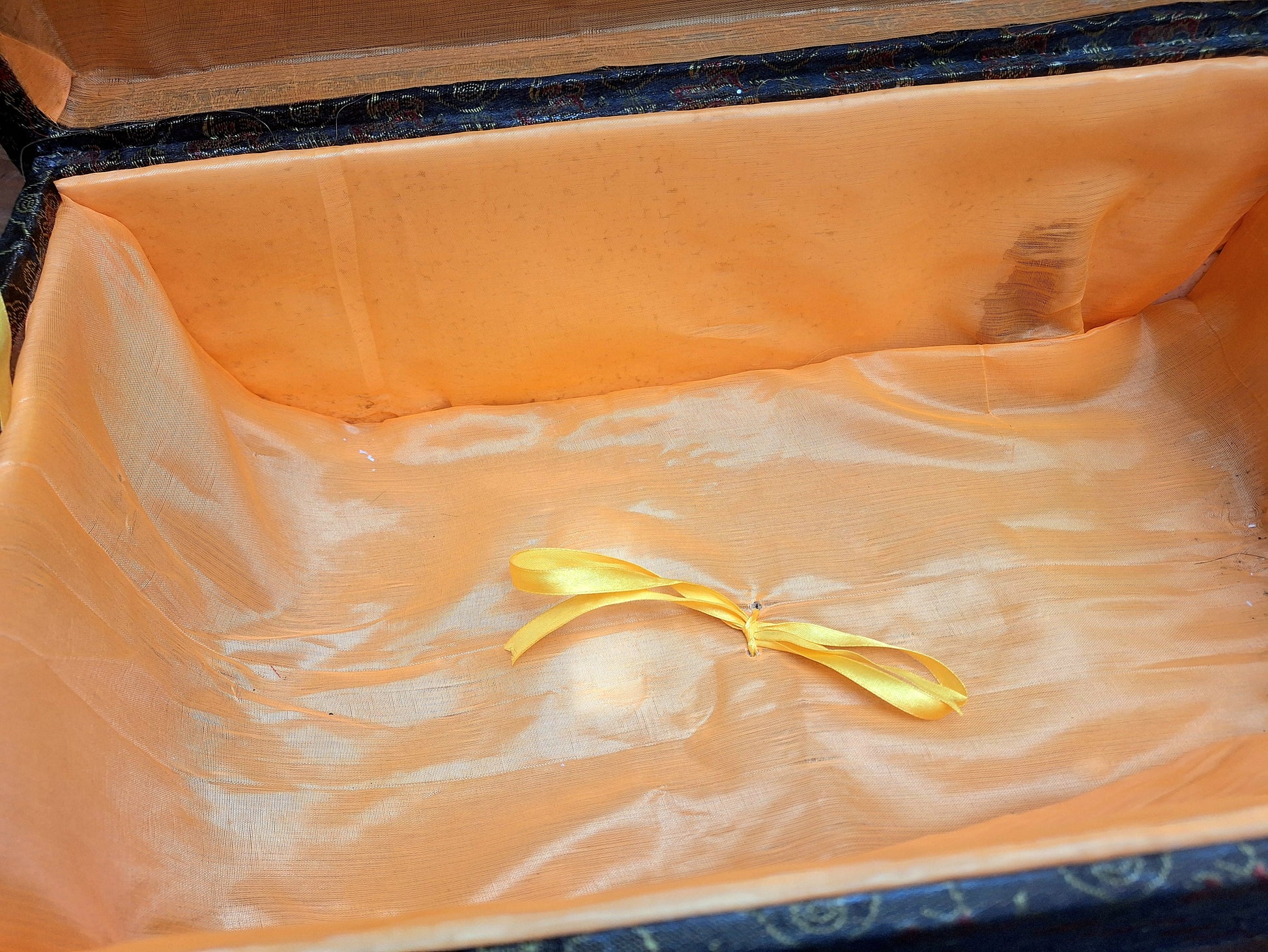 Bright deep yellow satin lining (not fully fixed- open joins at base)