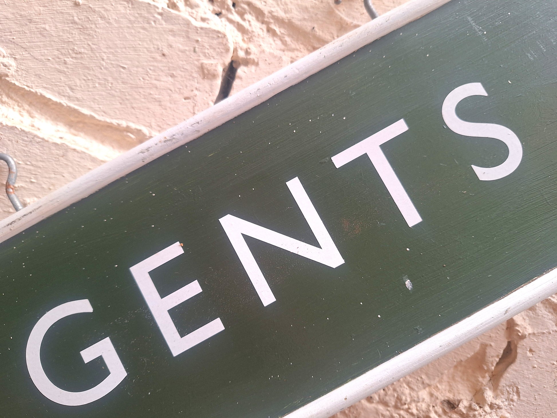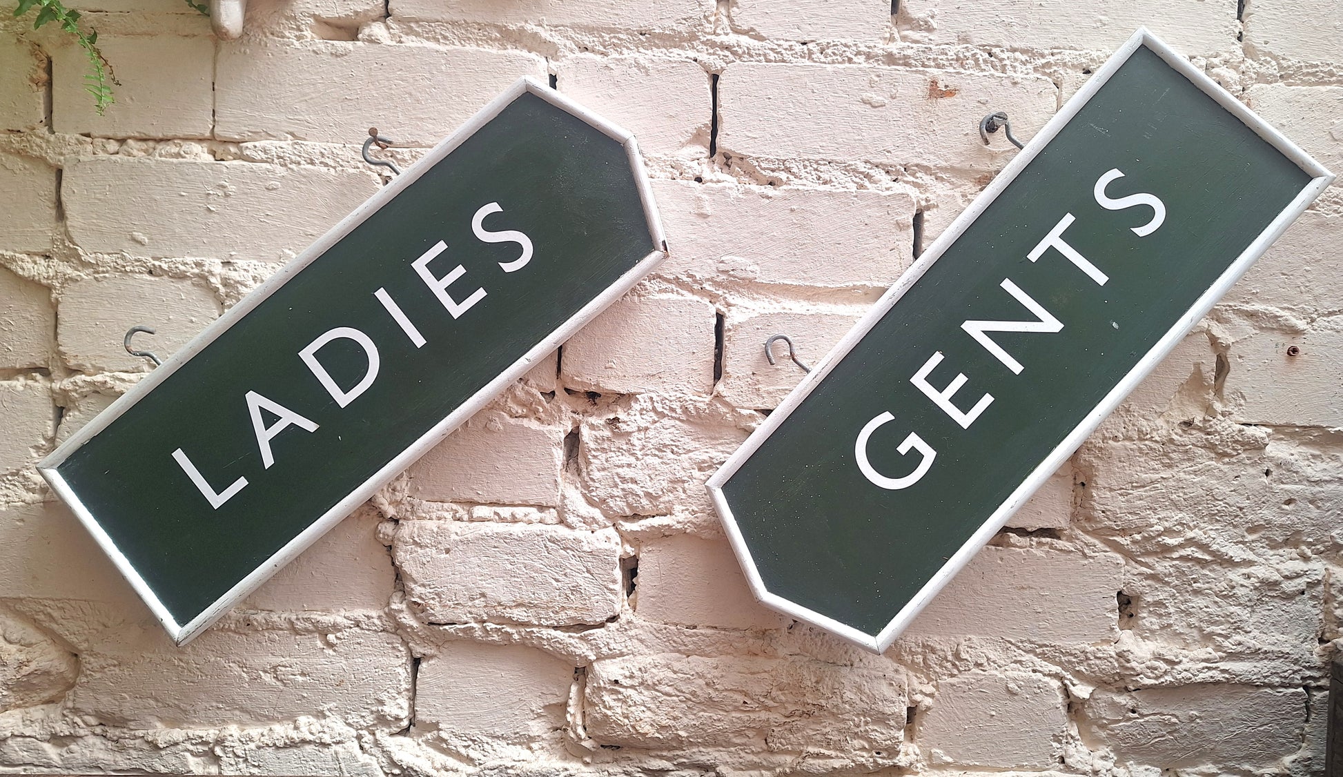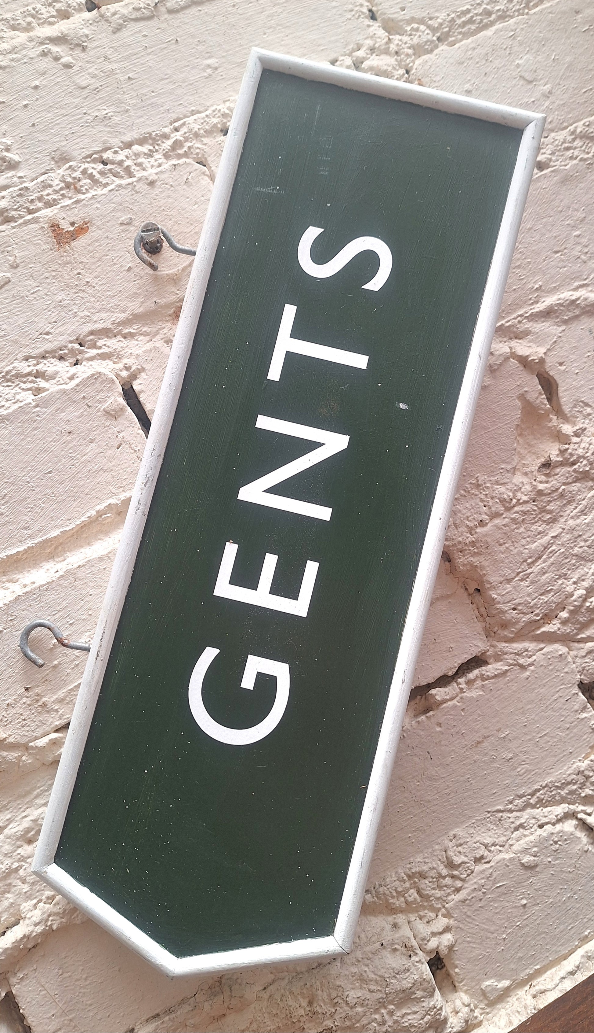 A lovely pair of arrow shaped wooden Ladies and Gents toilet signs.