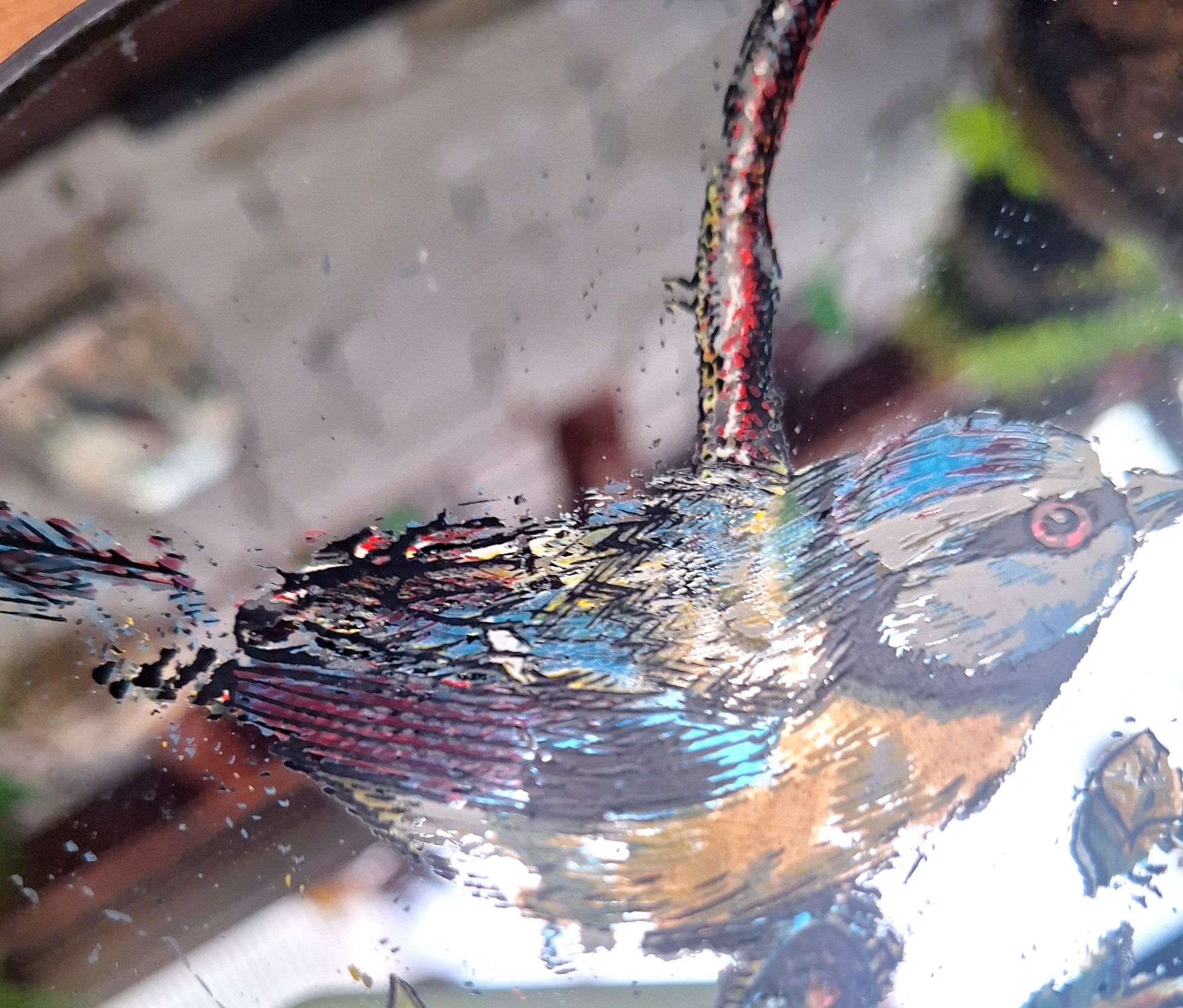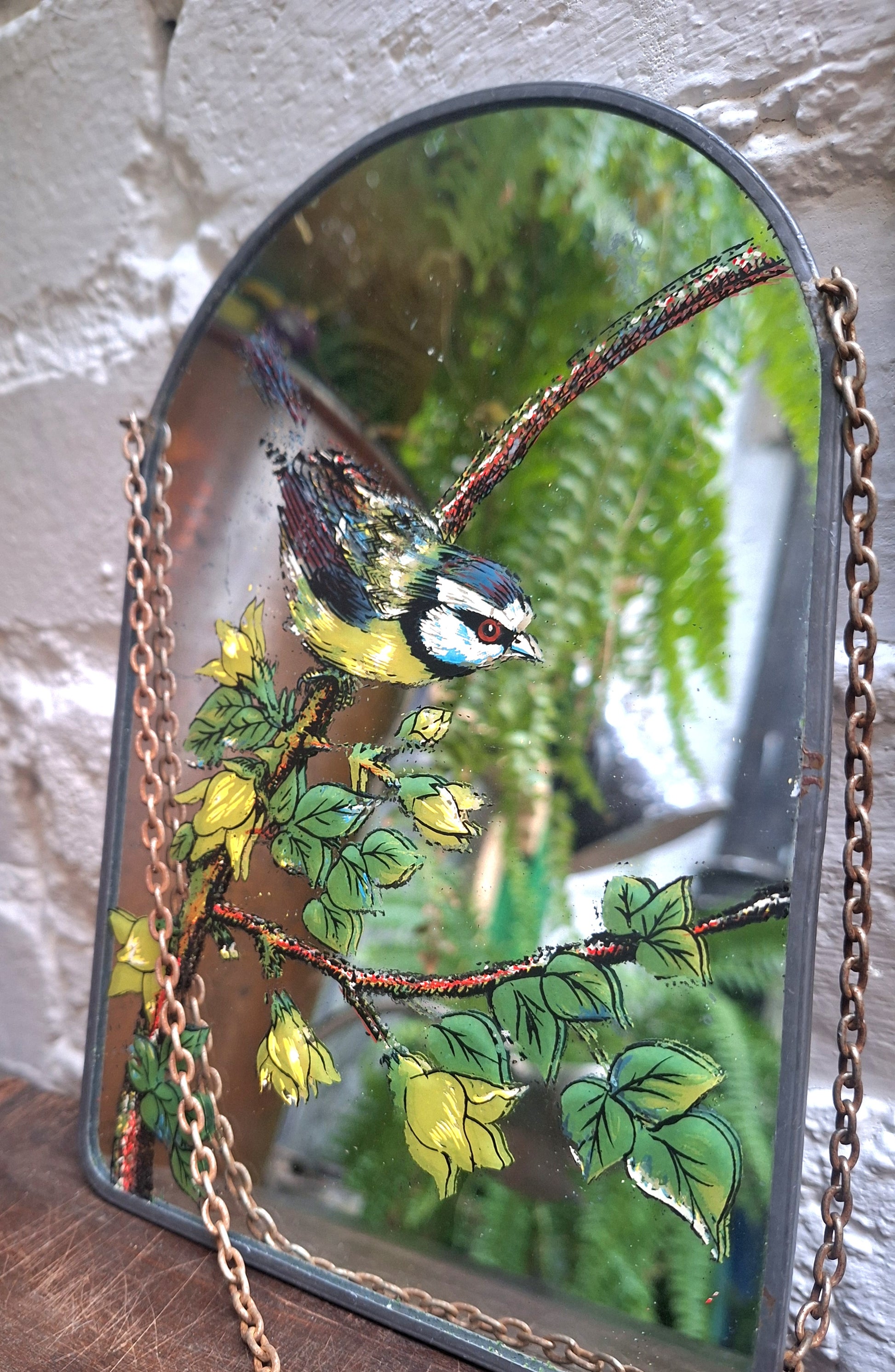 Each mirror is painted with a different bird.